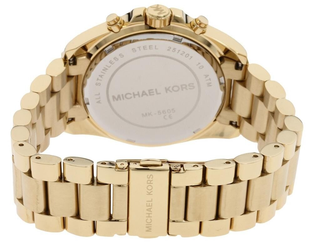 Het MK5739 Bradshaw Gold horloge combineert sportieve elegantie met klassieke details in een stijlvolle goud met zwart kleurstelling. Schitterend ontworpen Romeinse uurmerken zijn prachtig in harmonie met de wijzerplaat. Het glas is van gehard mineraal. De diameter van de kast is 42 mm, daarmee heeft dit horloge een formaat dat zowel dames als heren past. Het horloge heeft een chronografisch display met een quartz uurwerk. Het horloge is waterbestendig tot 10 ATM (100m). Zeer stijlvol geheel.